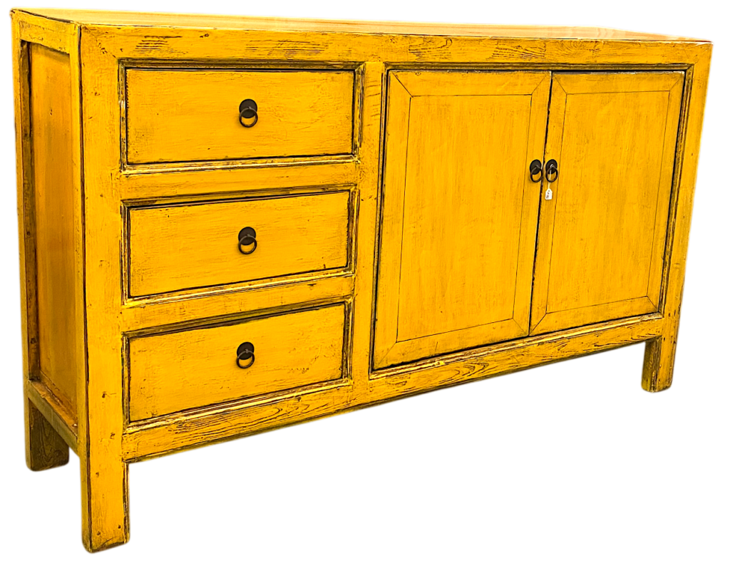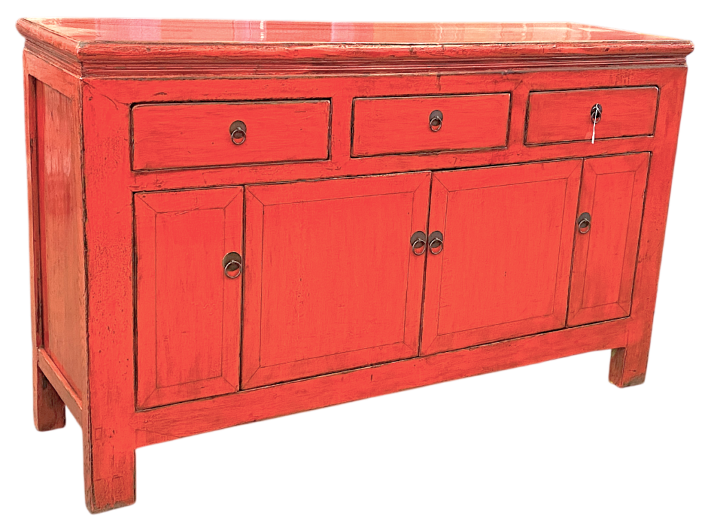 Antico baule utilizzato per contenere il corredo nuziale, in Teak massello decorato con strati di colori sovrapposti