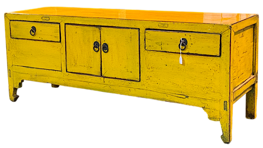 Mobile di epoca Qing in legno di Olmo con laccatura rinnovata di particolare colore giallo senape
